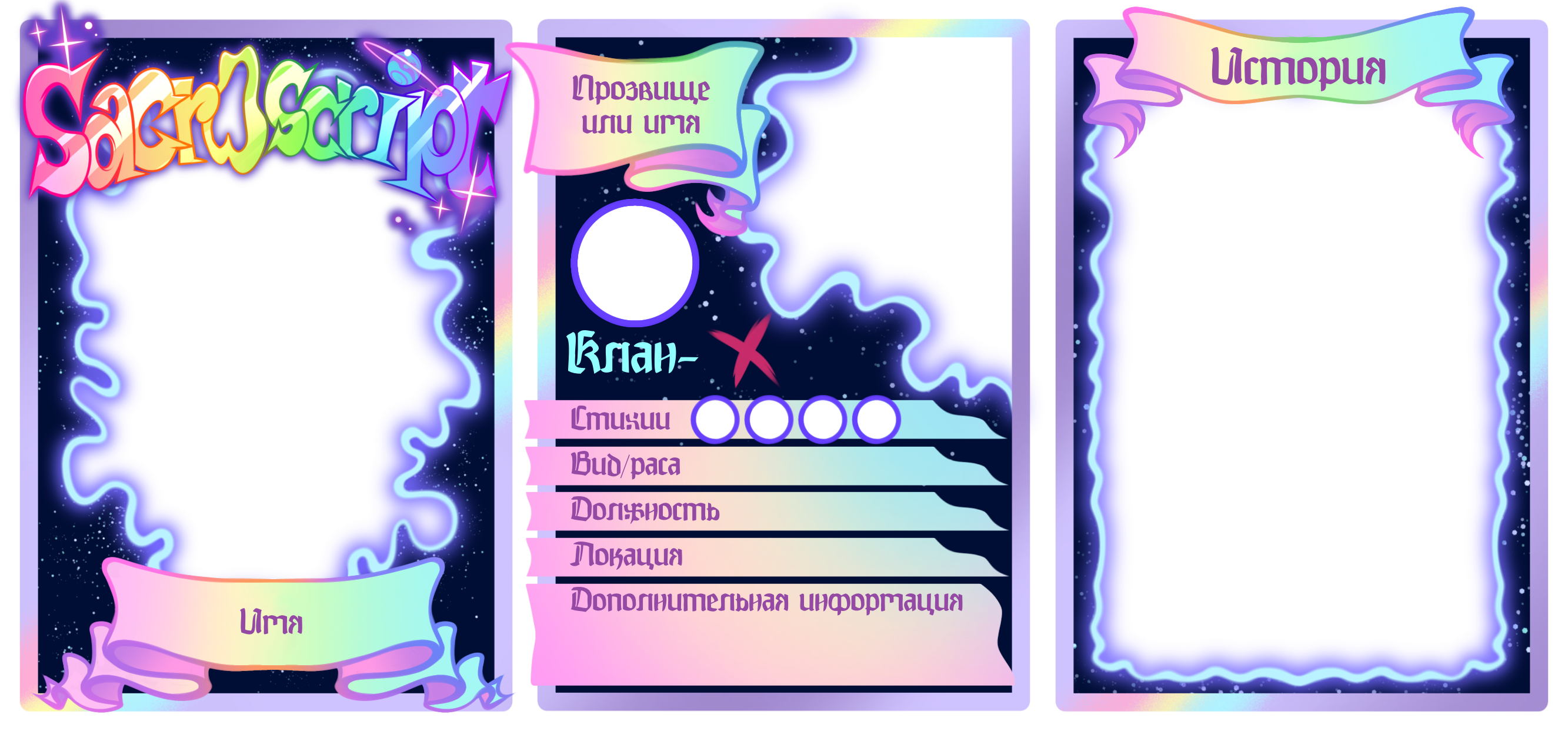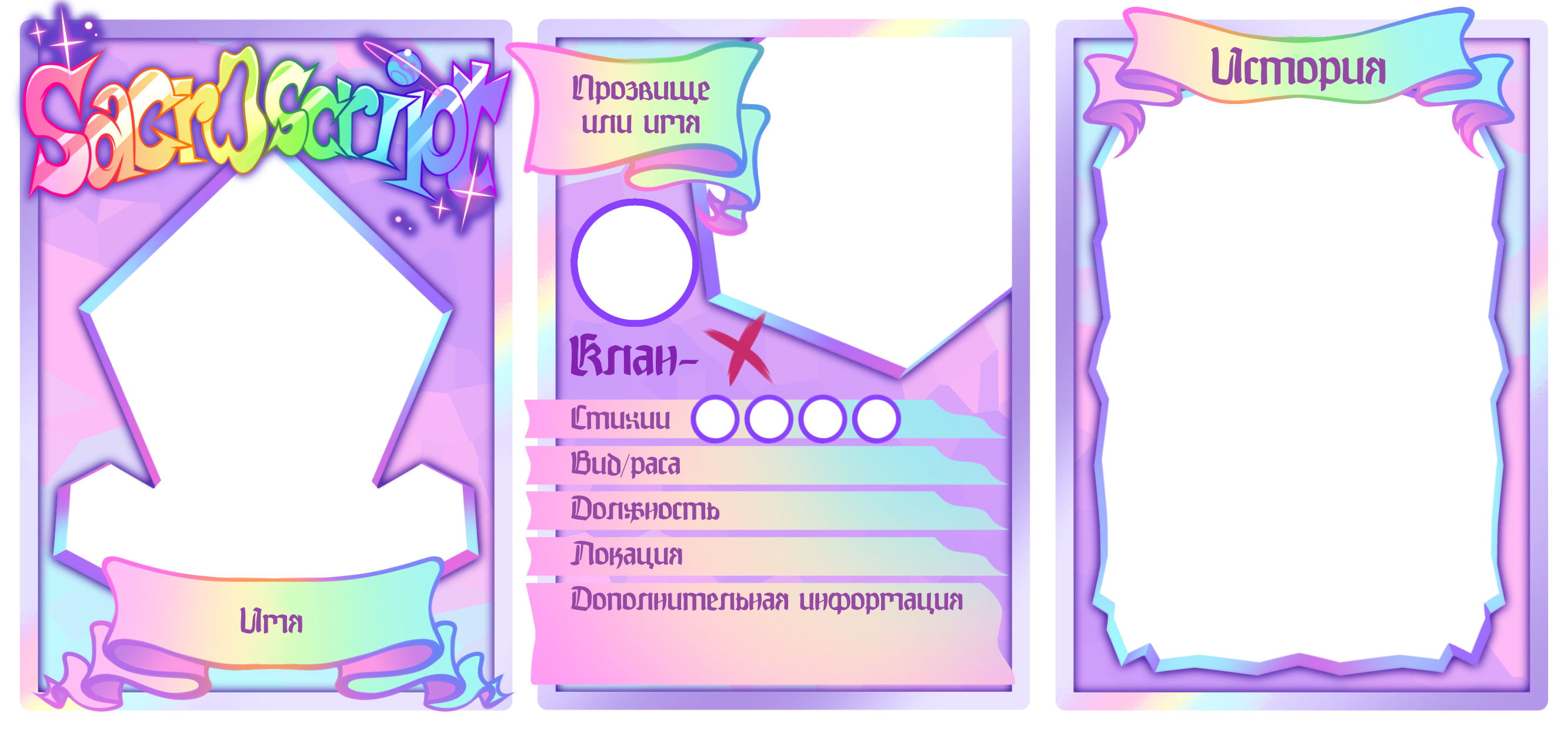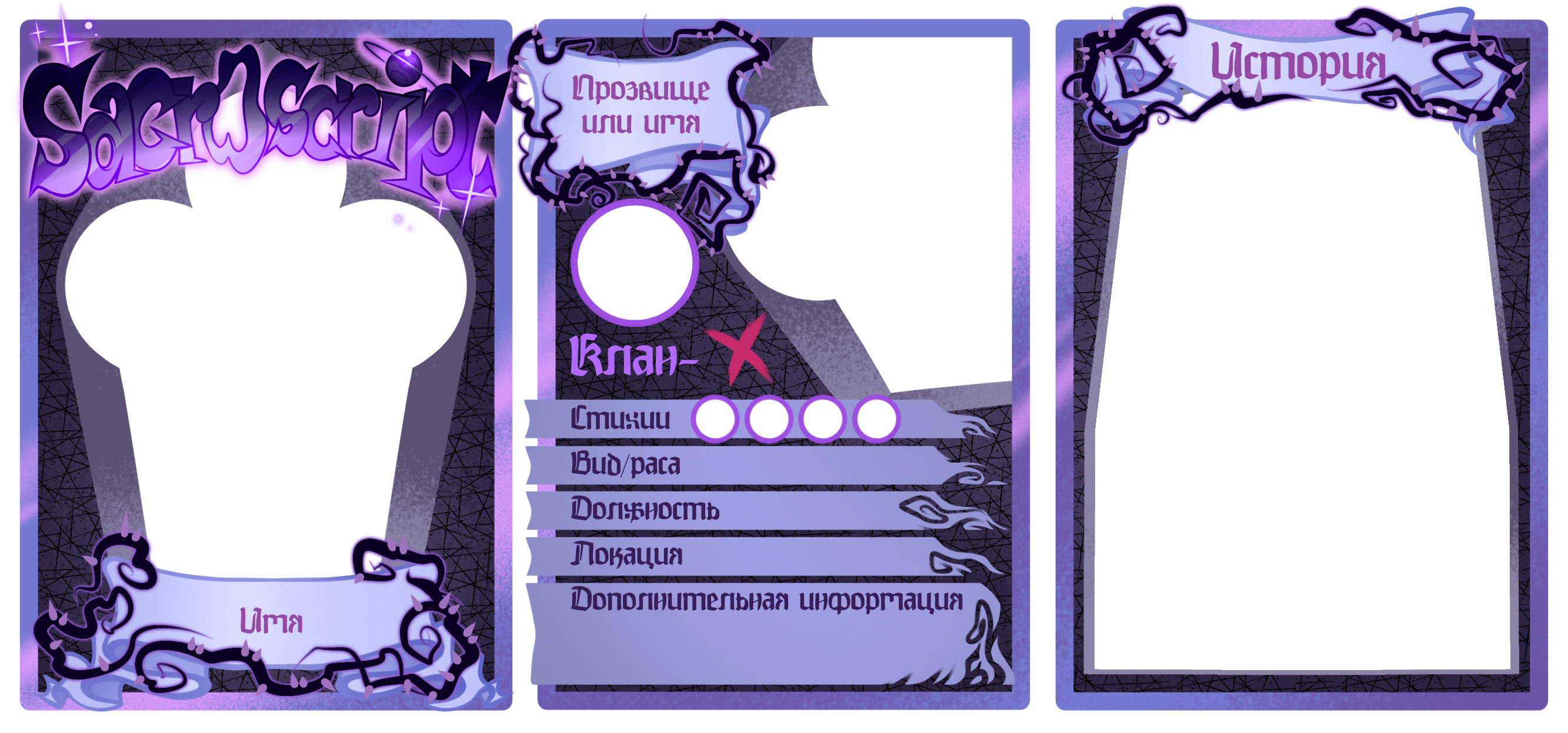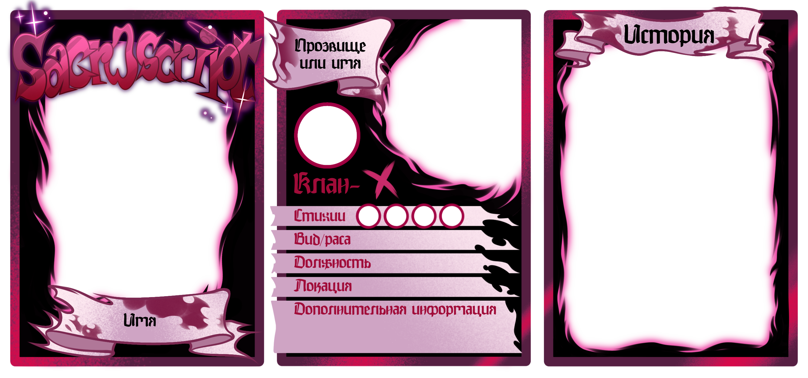 ✧ Вы можете менять местами оформление анкет, или менять дизайн полностью, чтобы она лучше подходила персонажу.